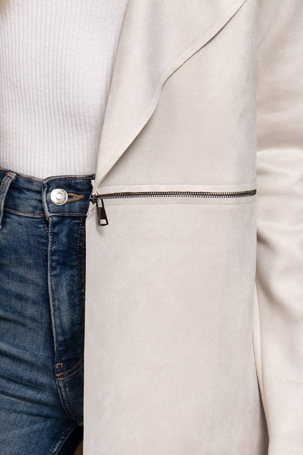 Active Basic | Active USA - Long Sleeve Front Two Zipper Detail Faux Suede Long Jacket