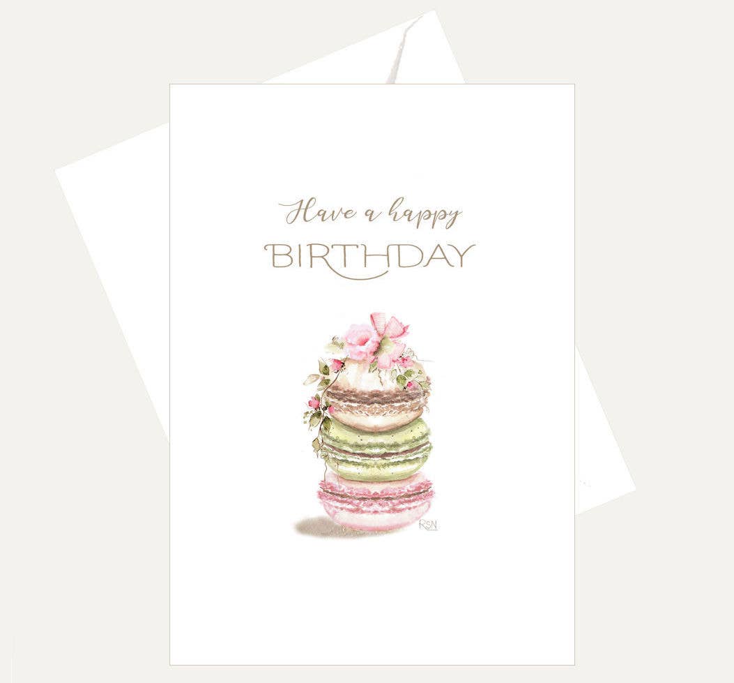 Bellflower Girl - Have a Happy Birthday - Yummy French Macaron Cookie Card