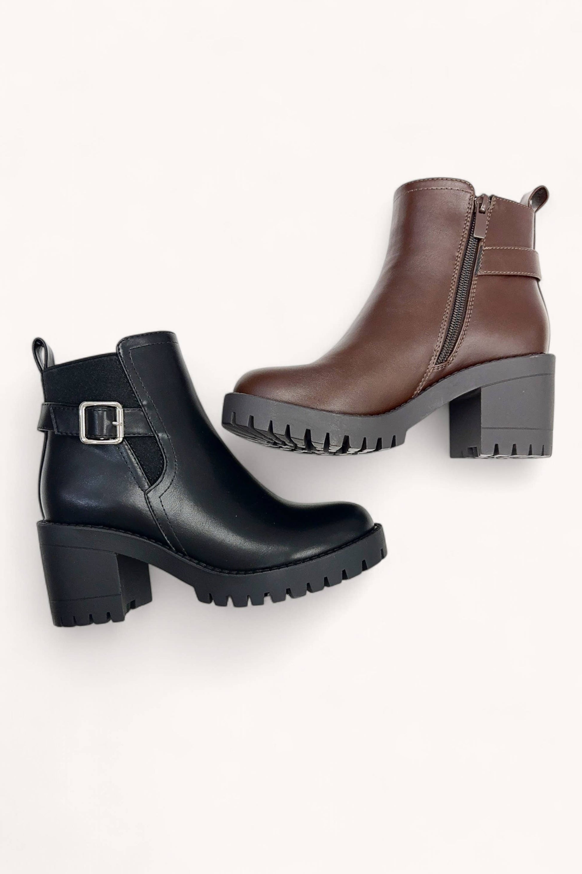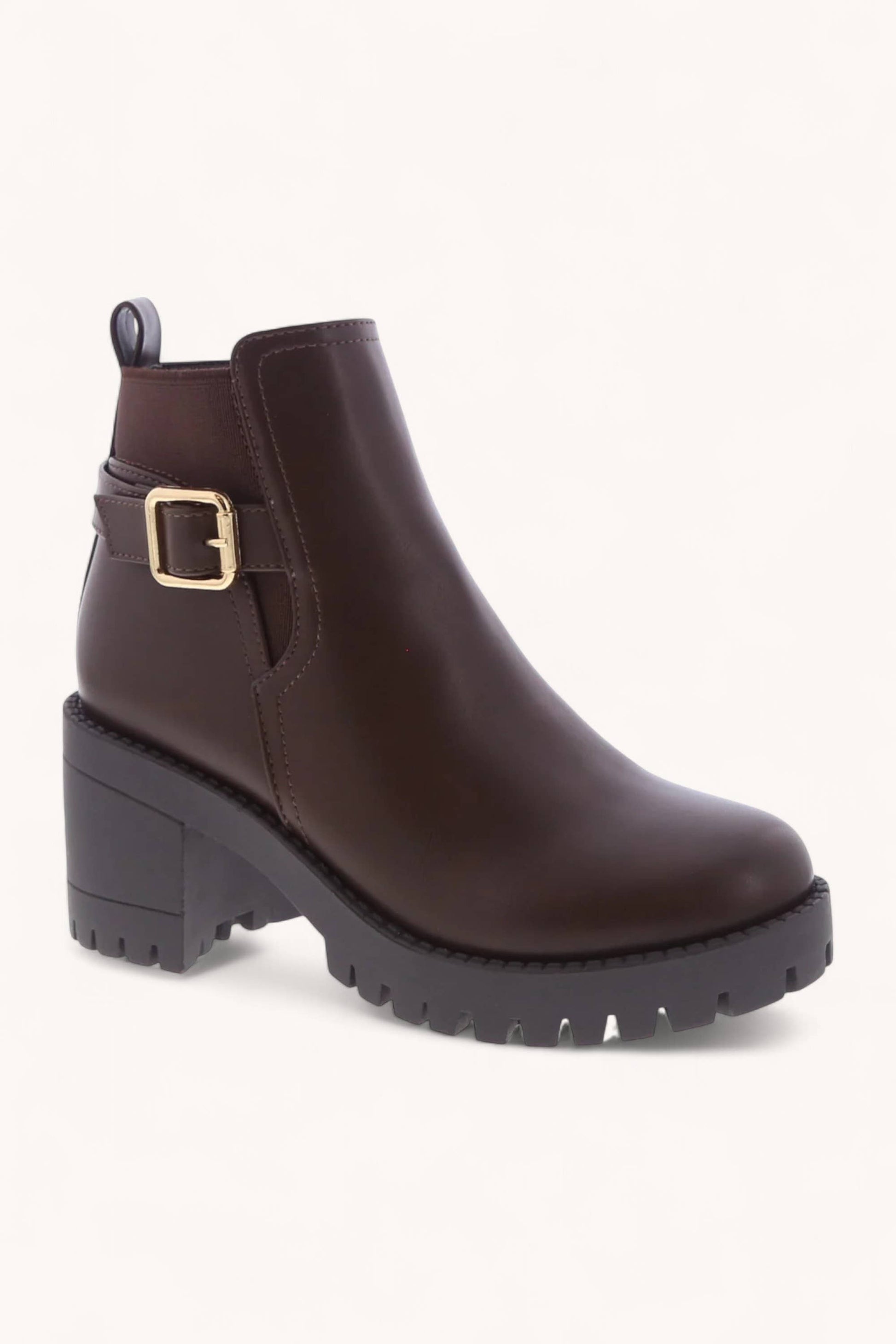 Define your look with our bold platform block heel Chelsea boots, featuring a distinctive buckled ankle strap detail. These modern boots combine a sturdy lug sole with a comfortable block heel for stability and style. Designed for effortless wear, they add an edgy yet versatile touch to any outfit, from casual denim to elevated streetwear. Step confidently into any season.