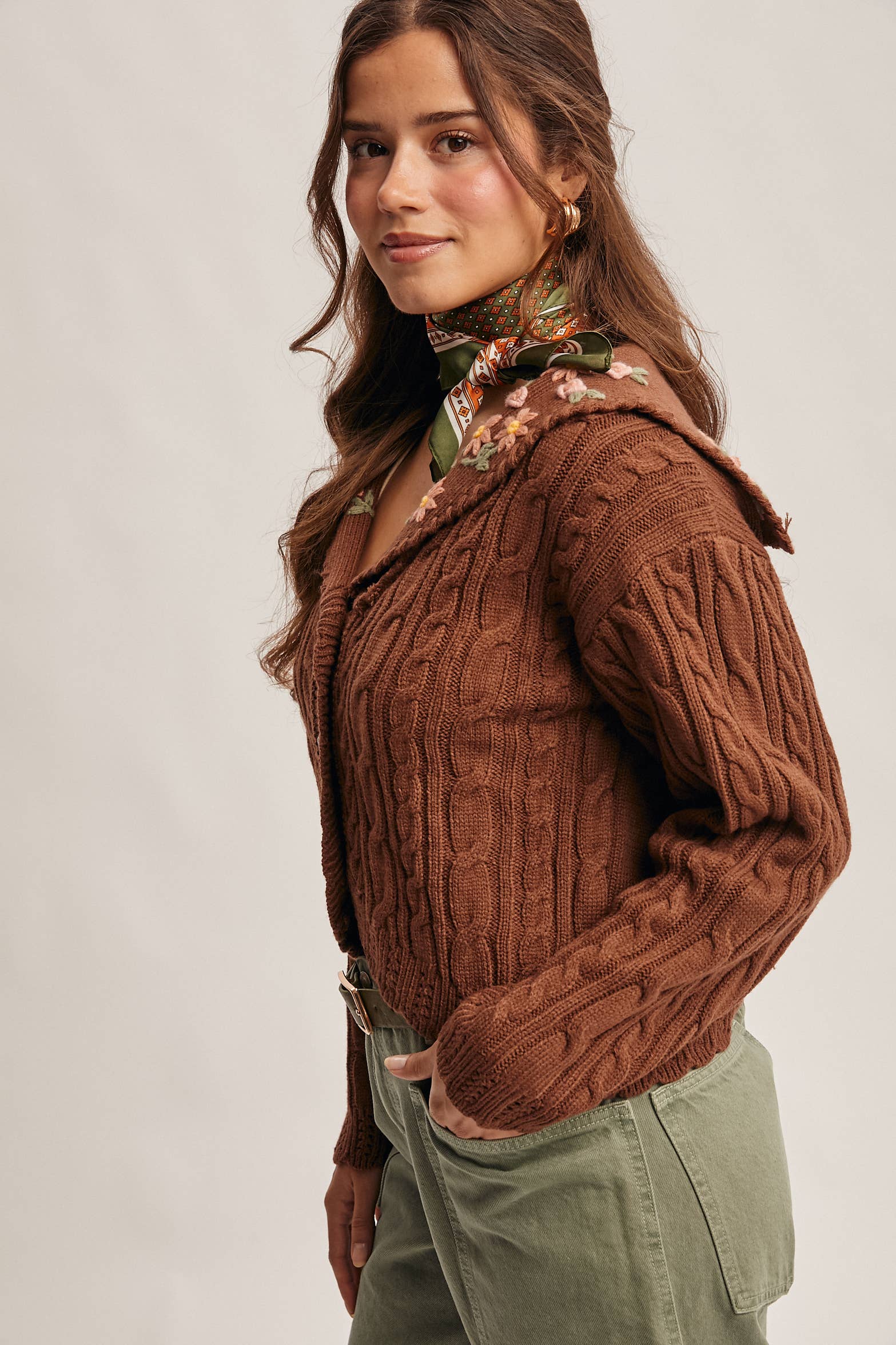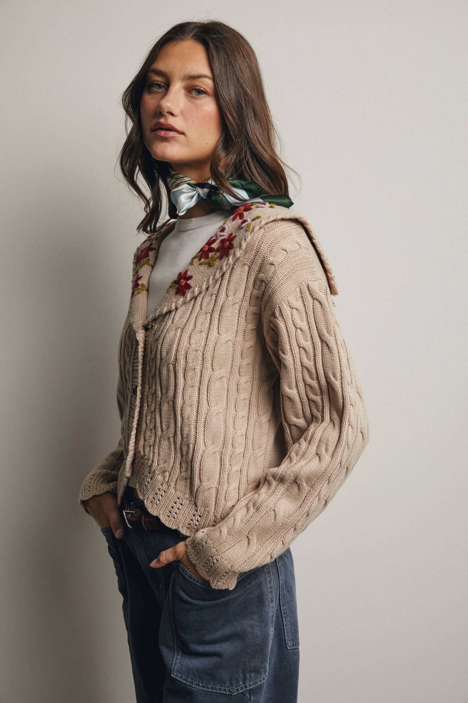Forte - Cable Knit Embroidered Collar Cardigan FSW0024
