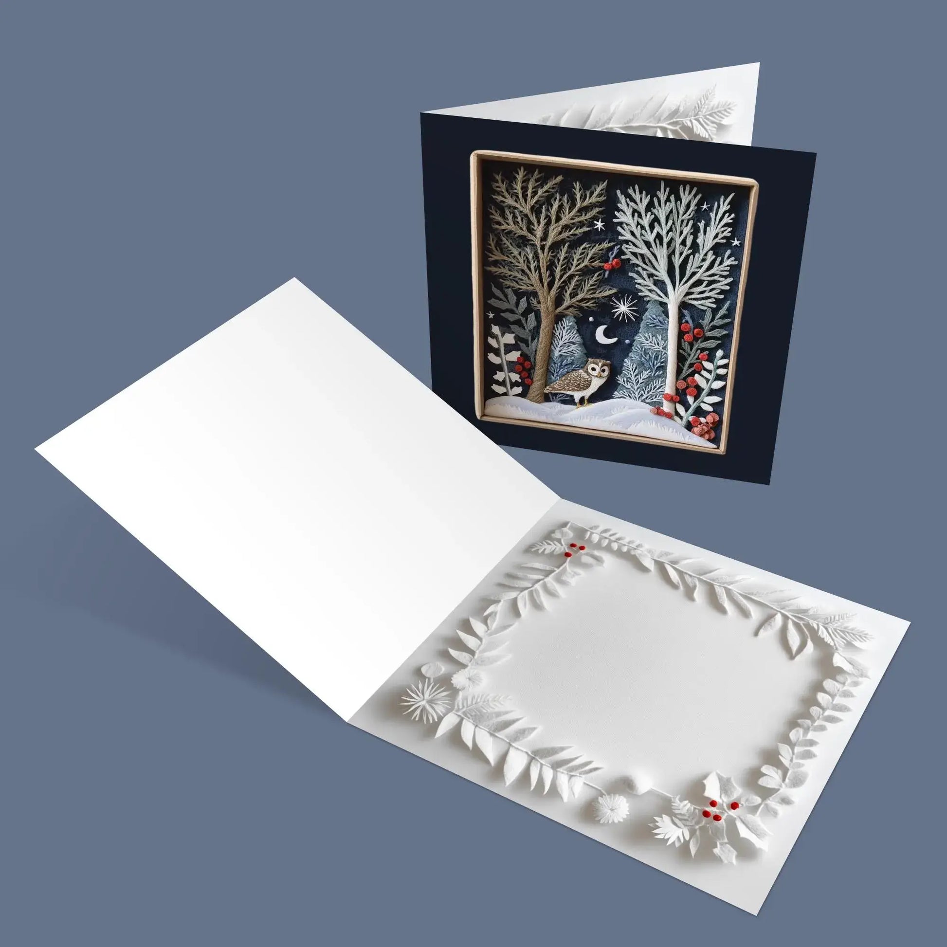 Good Post Day - Winter Moon Owl 2D Printed Shadow Box Card