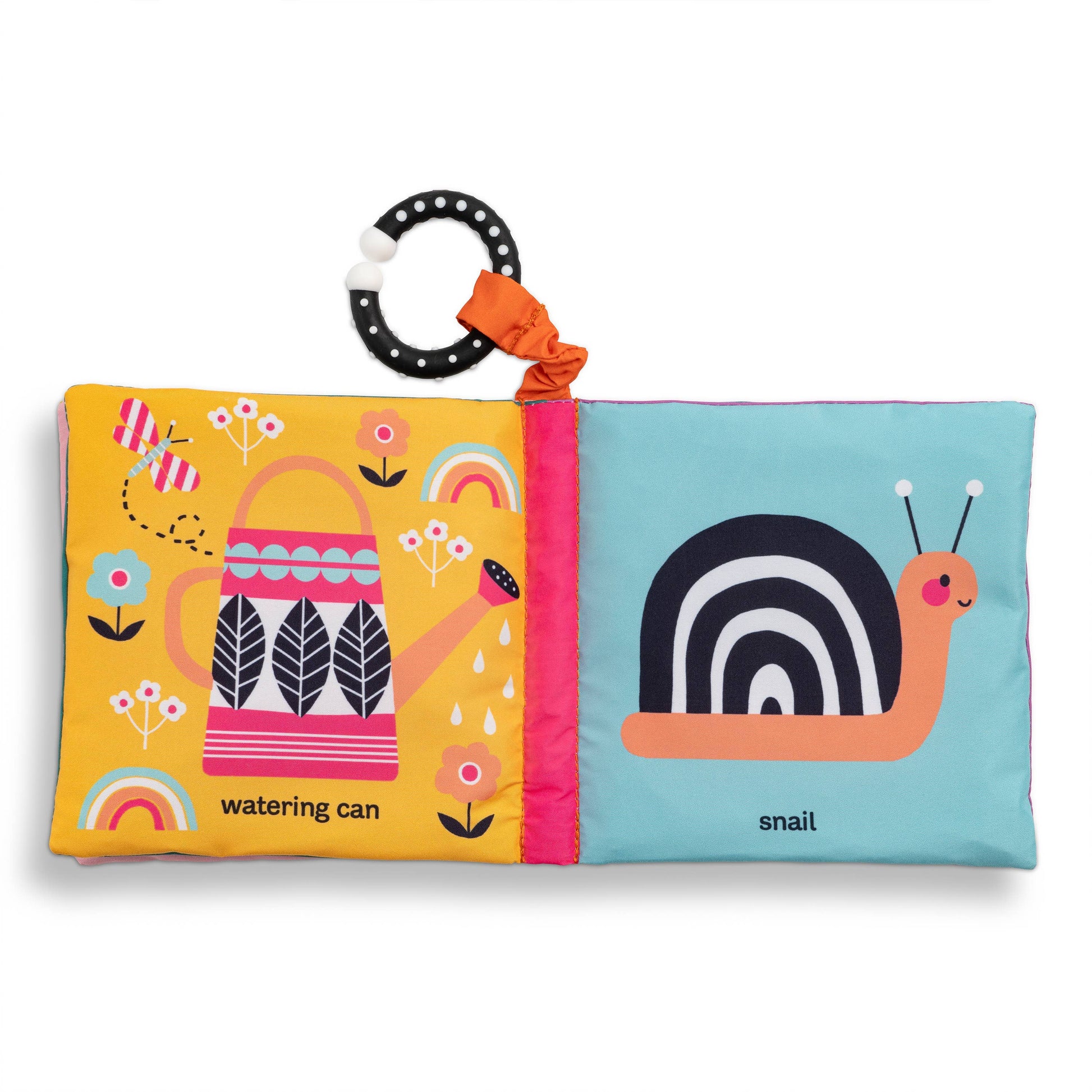 Explore a garden in this crinkly cloth book with a teether! Introduce babies and toddlers to the garden in this soft book with enticing crinkly pages. Through bright, colorful illustrations, little ones will learn first words like ladybug, watering can, and flower while developing their senses and fine motor skills. Perfect for repeat readings (and crinkling!), this cloth book packaged with a teether is the ideal gift for any young child and caregiver.