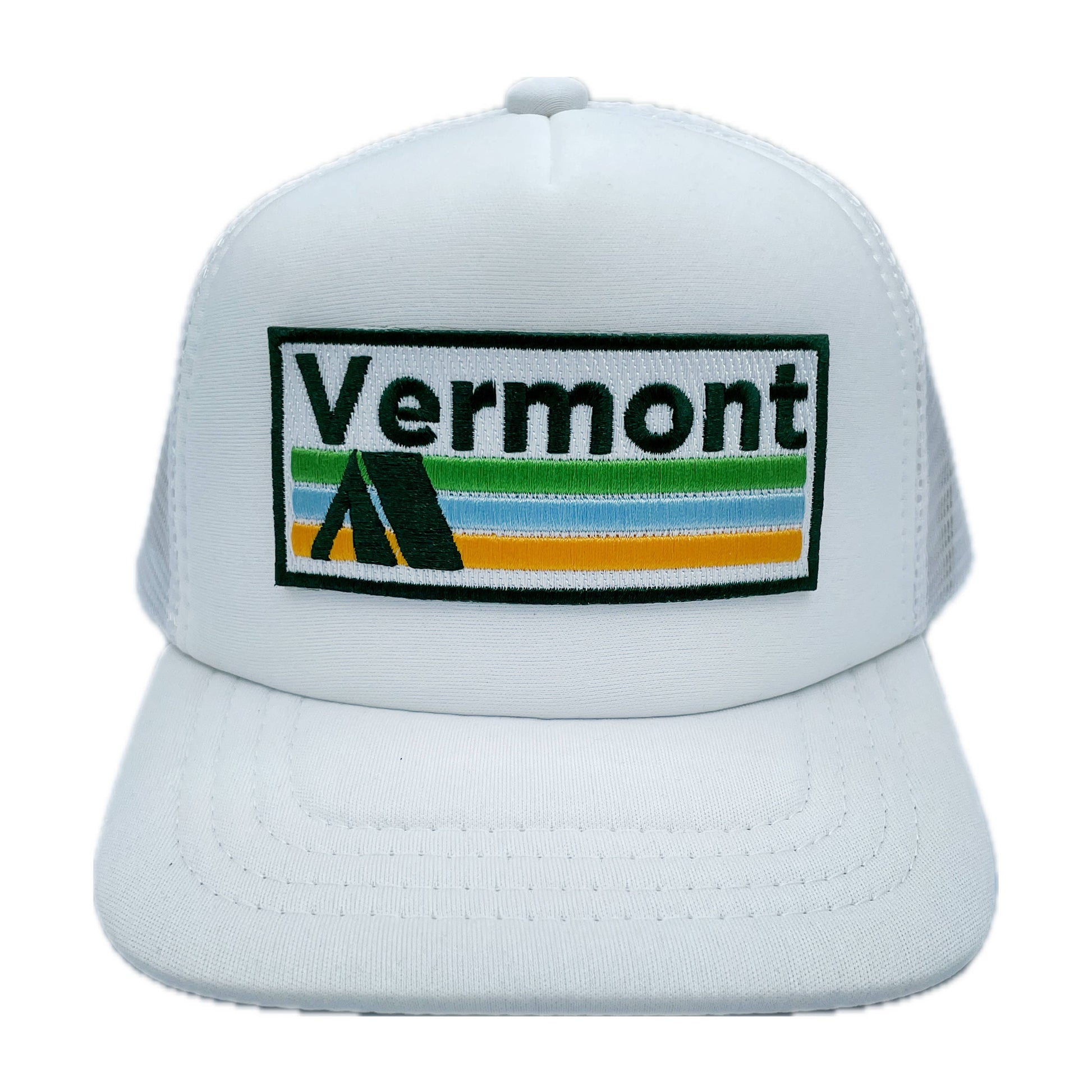 This high quality retro baby Vermont trucker hat / snapback trucker hat has a 100% embroidered patch with a colorful design. It's a great gift for a baby shower for any Vermont baby or family who lives in or visits Vermont.