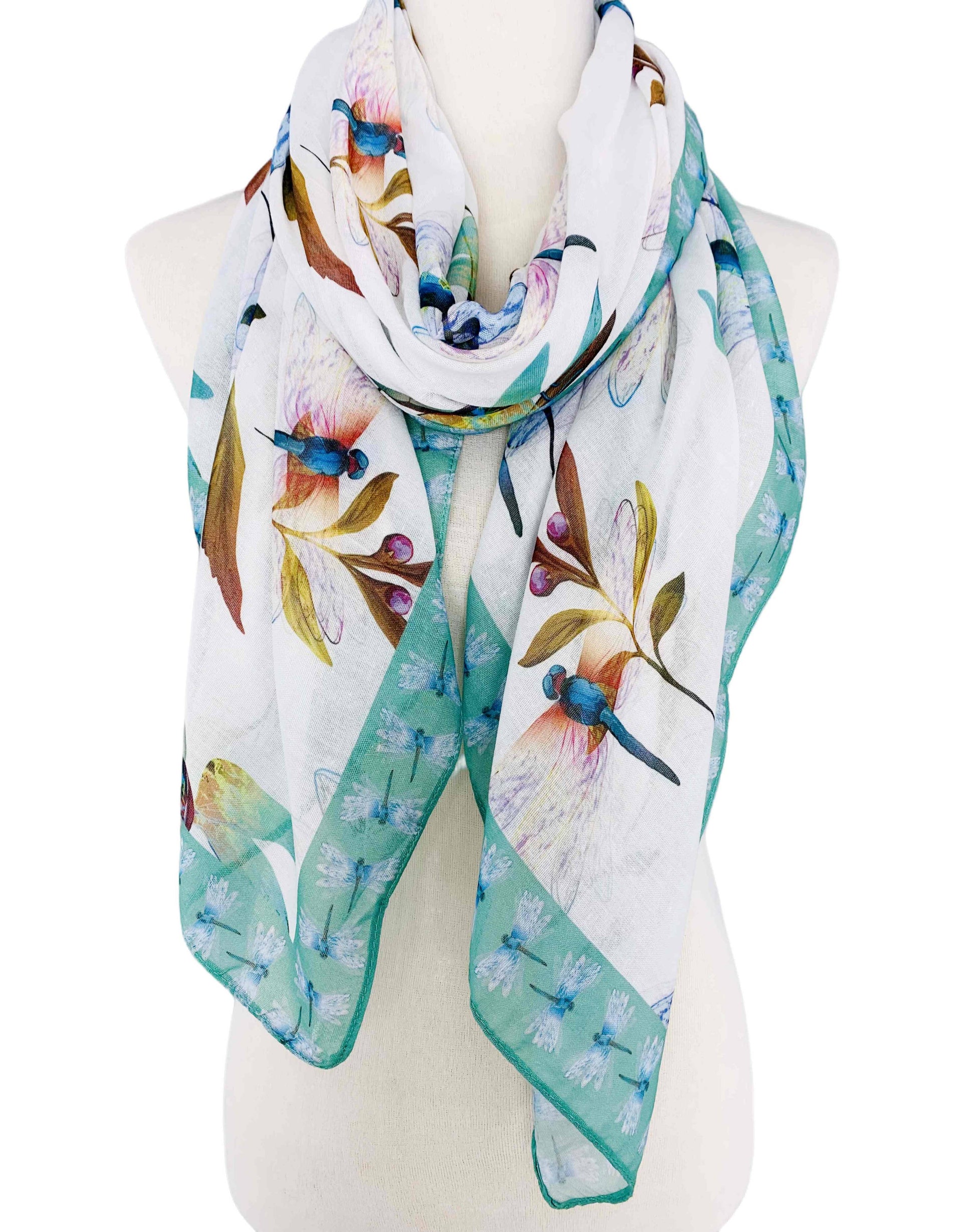 JC Sunny Fashion - JC071106 Aqua-Multi Dragonfly Scarf