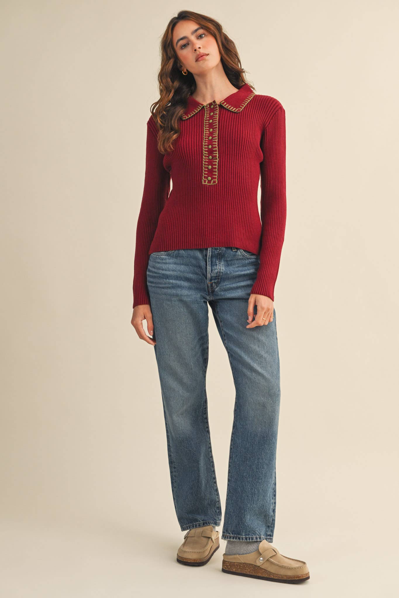 &MERCI - COLLARED RIBBED SWEATER WITH CONTRAST STITCH MSW11233