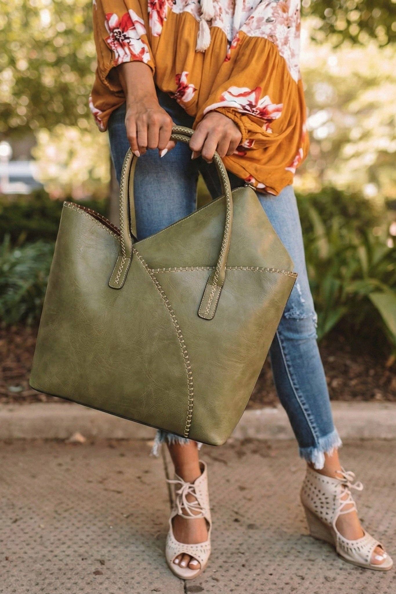 MiMi Wholesale - COL001-2 2-in-1 Stitch Trim Detail Shoulder/Tote Set Bag