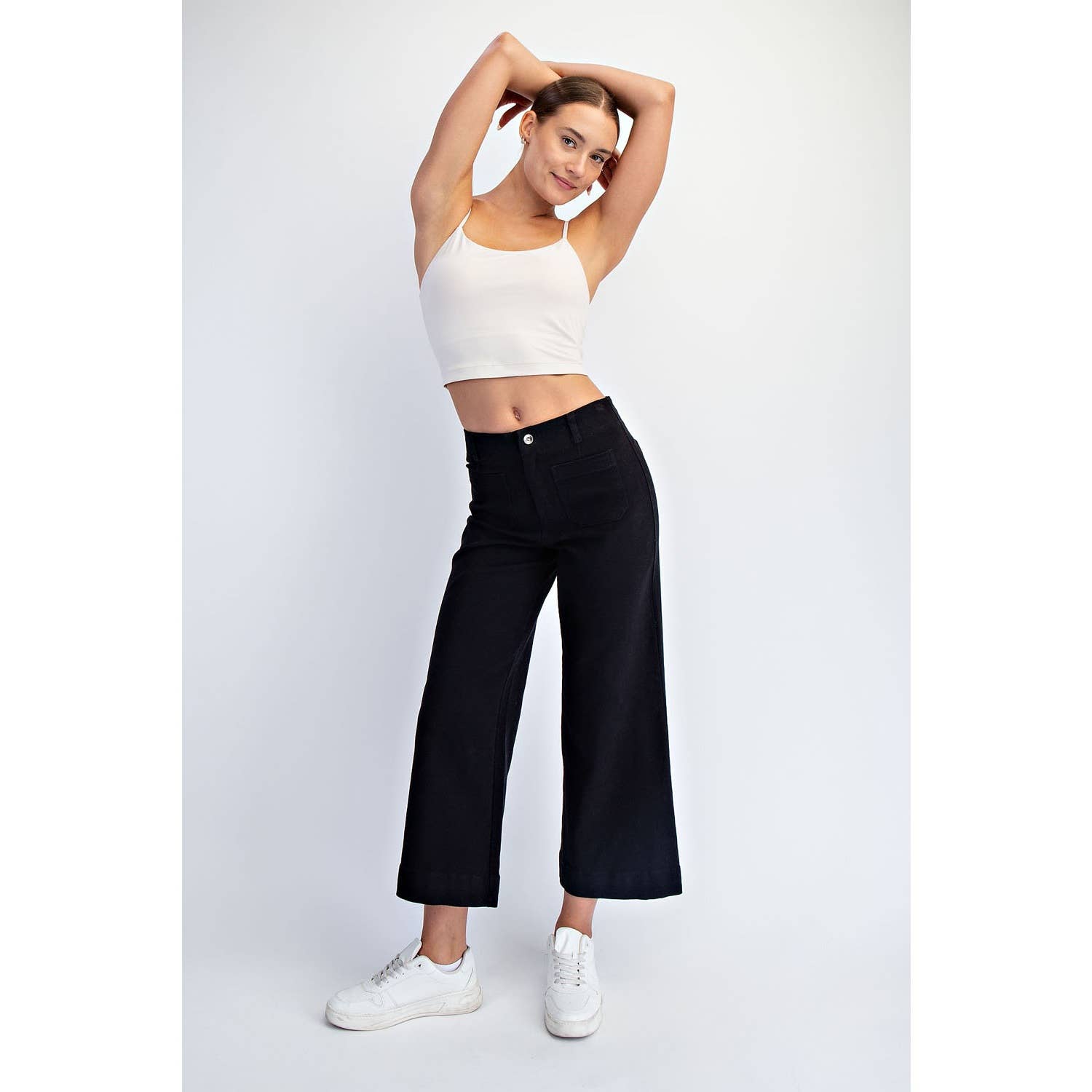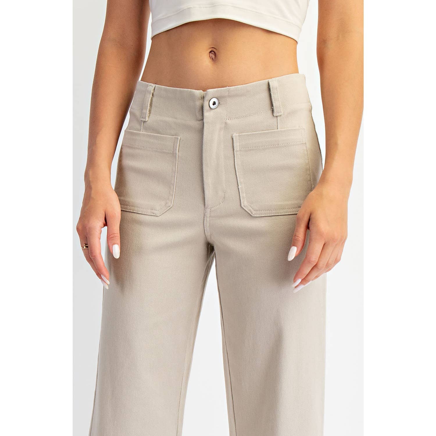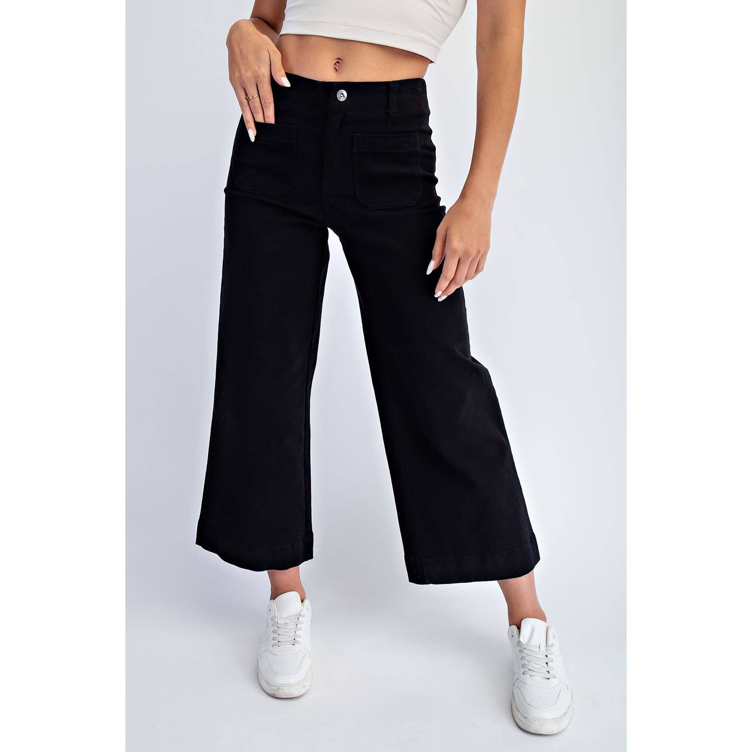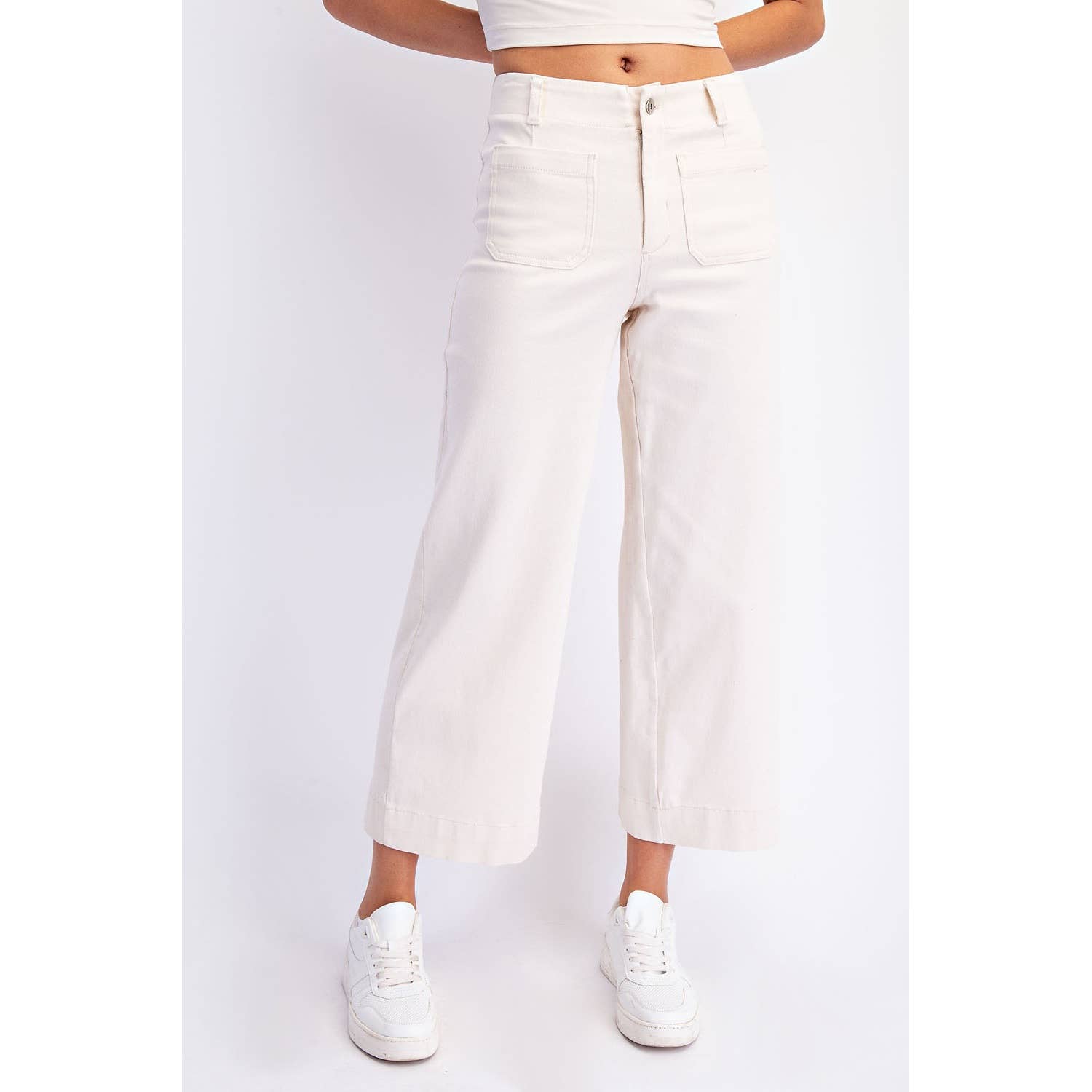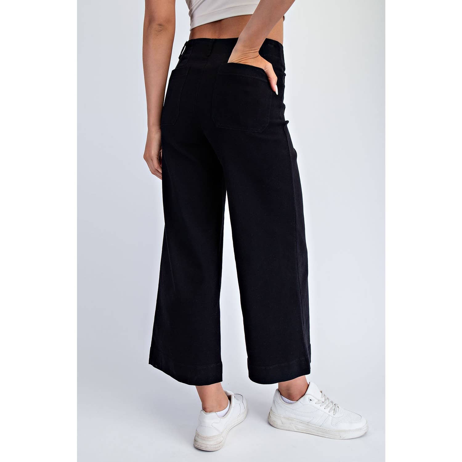 Crafted from textured heavy cotton twill with a hint of stretch, these cropped wide-leg pants offer structured ease, all-day comfort, and breathability—perfect for your everyday wardrobe. With a clean silhouette, patch pocket accents, and a classic button closure, they strike the perfect balance between utility and understated style. Ideal for casual days with a modern edge.