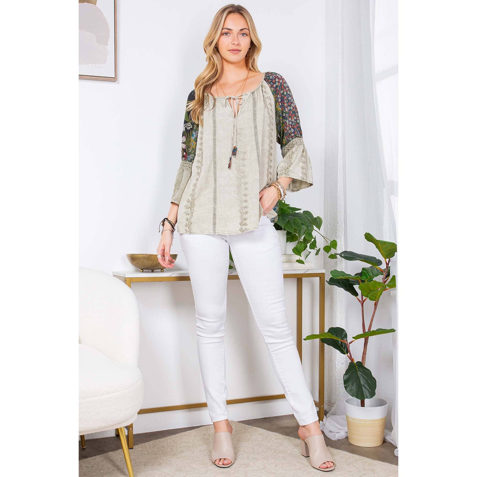 Young Threads - Enchanting Whimsy Overdyed Rayon Peasant Top With Embroidery